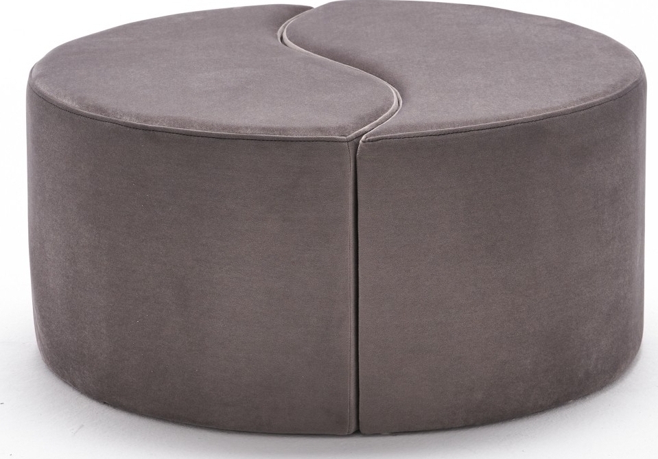 Sittpuff av trä. Klädsel av polyester och sammet.