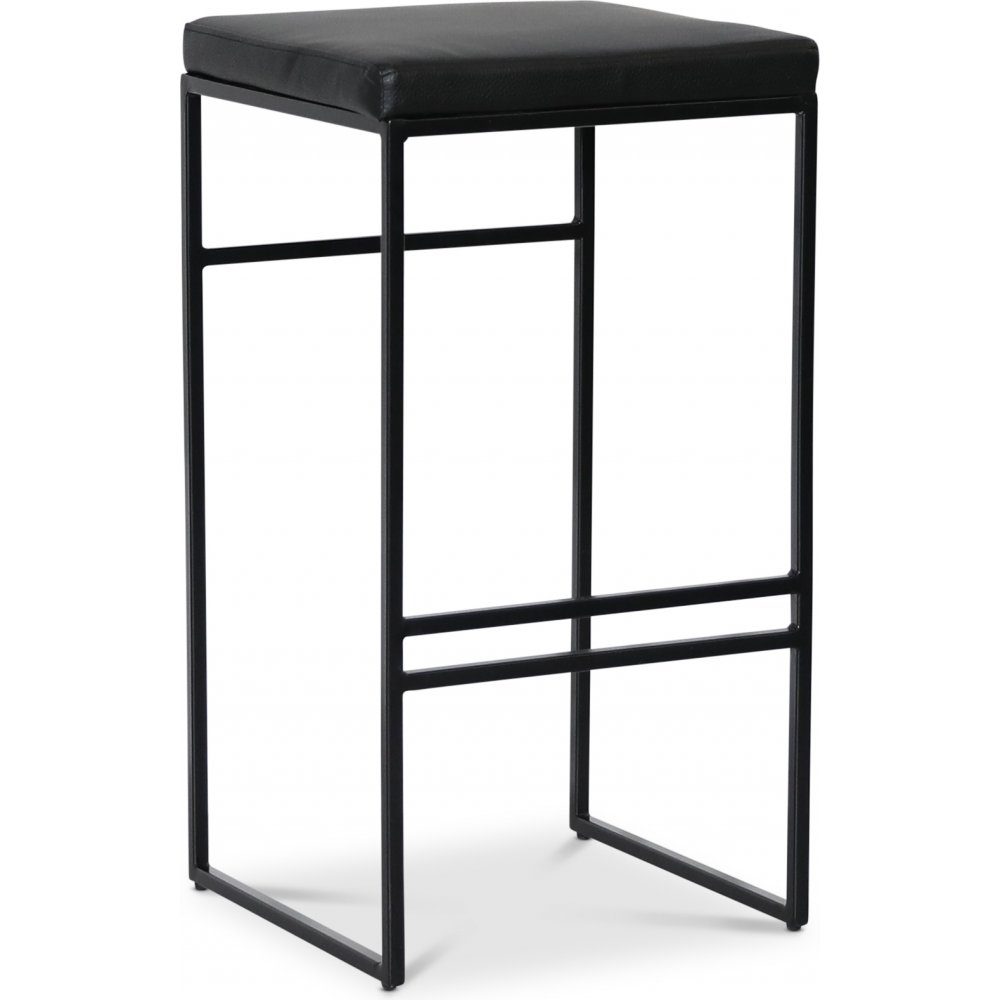 Stilig och modern barstol med sits och dyna i svart PU. Svarta pulverlackade ben.