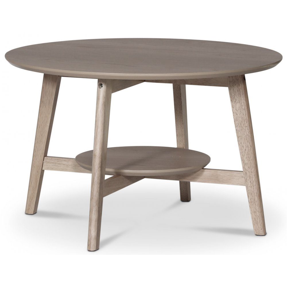 Bridge runt soffbord med hylla Ø80 cm - Whitewash