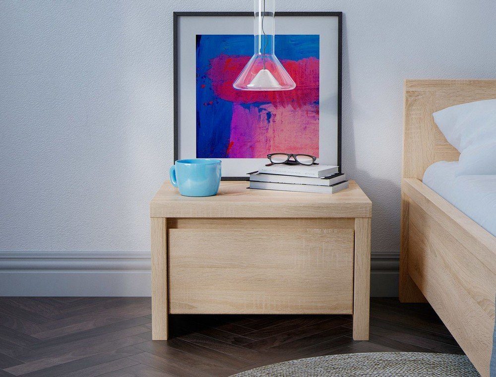 Sängbordet är utrustat med en rymlig låda för förvaring av mindre föremål, perfekt för att hålla ordning på allt från böcker till laddare. Den generösa avställningsytan gör det enkelt att placera en lampa, väckarklocka eller andra dekorativa detaljer. Tack vare sina kompakta mått är det lättplacerat och passar lika bra i små som stora sovrum.