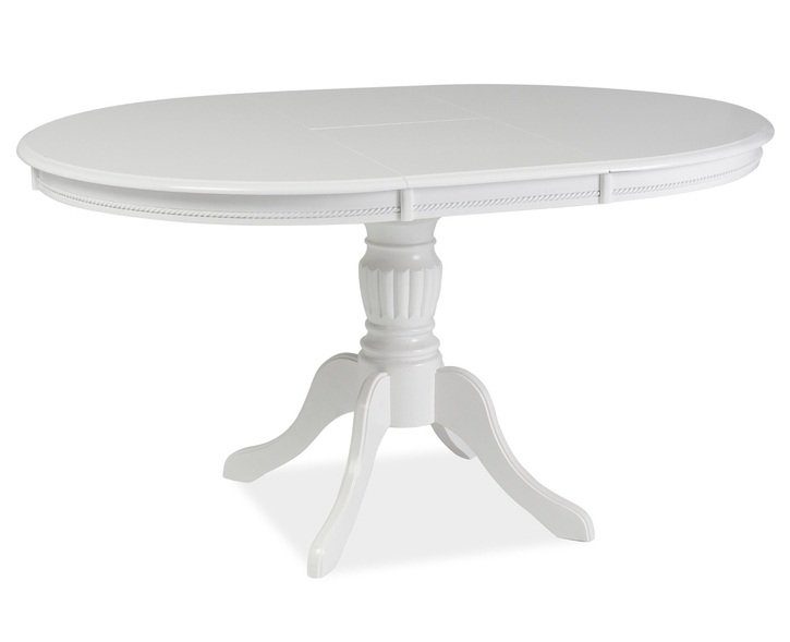Ett snyggt matbord med en klassisk design. Stommen är tillverkad av trä och bordsskivan är av vitlackerad MDF.
