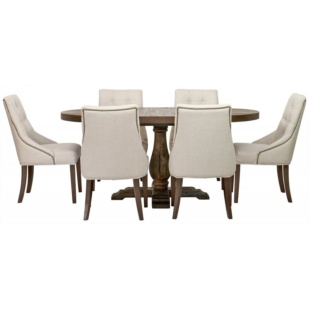 Matgrupp: Lamier matbord runt + 6 st Tuva Europa beige stolar: