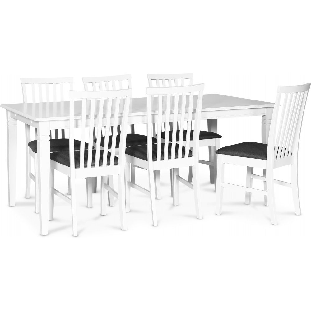 Sandhamn Matgrupp; Bord 180x95 cm med 6 st Sandhamn stolar - Grå / Vit + Stolsdyna