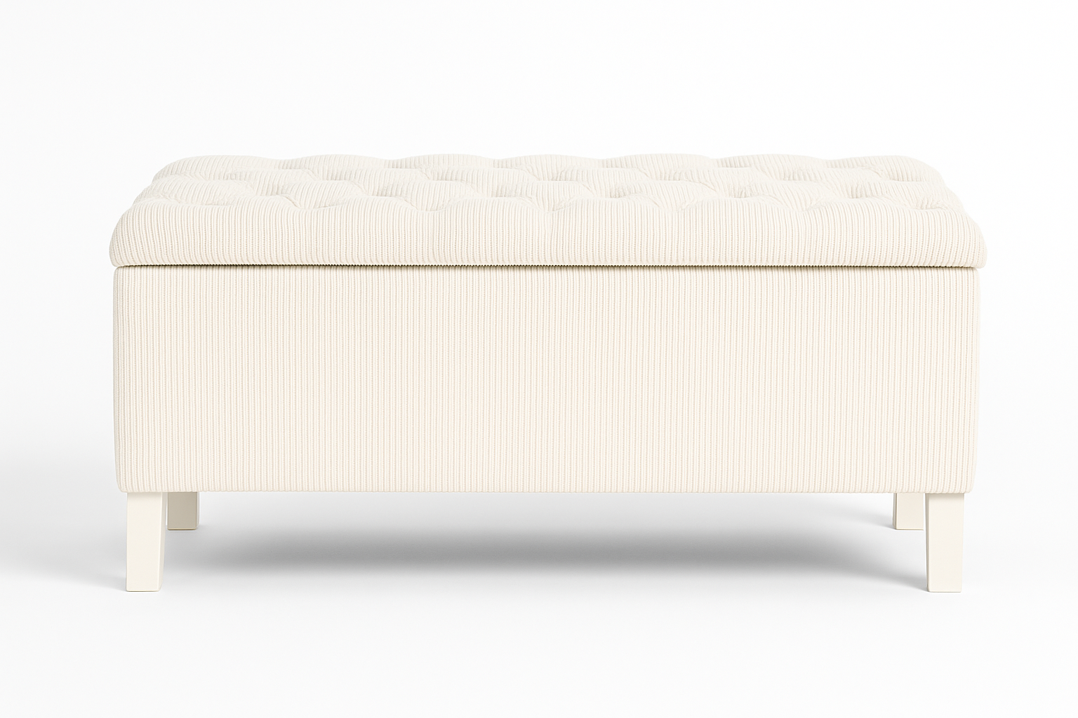 Ge sovrummet en stilren och funktionell detalj med denna eleganta sängkista. Den vadderade sitsen med dekorativa knappar ger ett exklusivt intryck och fungerar lika bra som sittbänk som extra förvaringsutrymme.