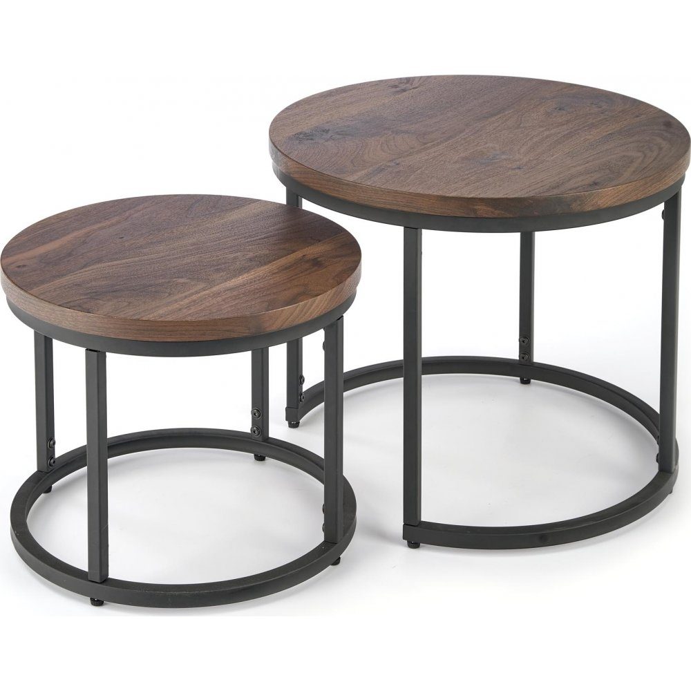 Satsbord bestående av två eleganta soffbord är en perfekt kombination av stil och funktion. Med sin vackra valnötsfinish ger borden en varm och inbjudande känsla, medan den svarta detaljen skapar en modern kontrast som gör att de passar in i olika inredningsstilar. Dessa bord är inte bara dekorativa utan också praktiska. De kan användas tillsammans eller separat, vilket gör dem mycket mångsidiga. De mindre borden fungerar utmärkt som sidobord, medan det större bordet kan användas som ett centralt soffbord. Deras kompakta storlek gör dem lättplacerade även i mindre utrymmen.