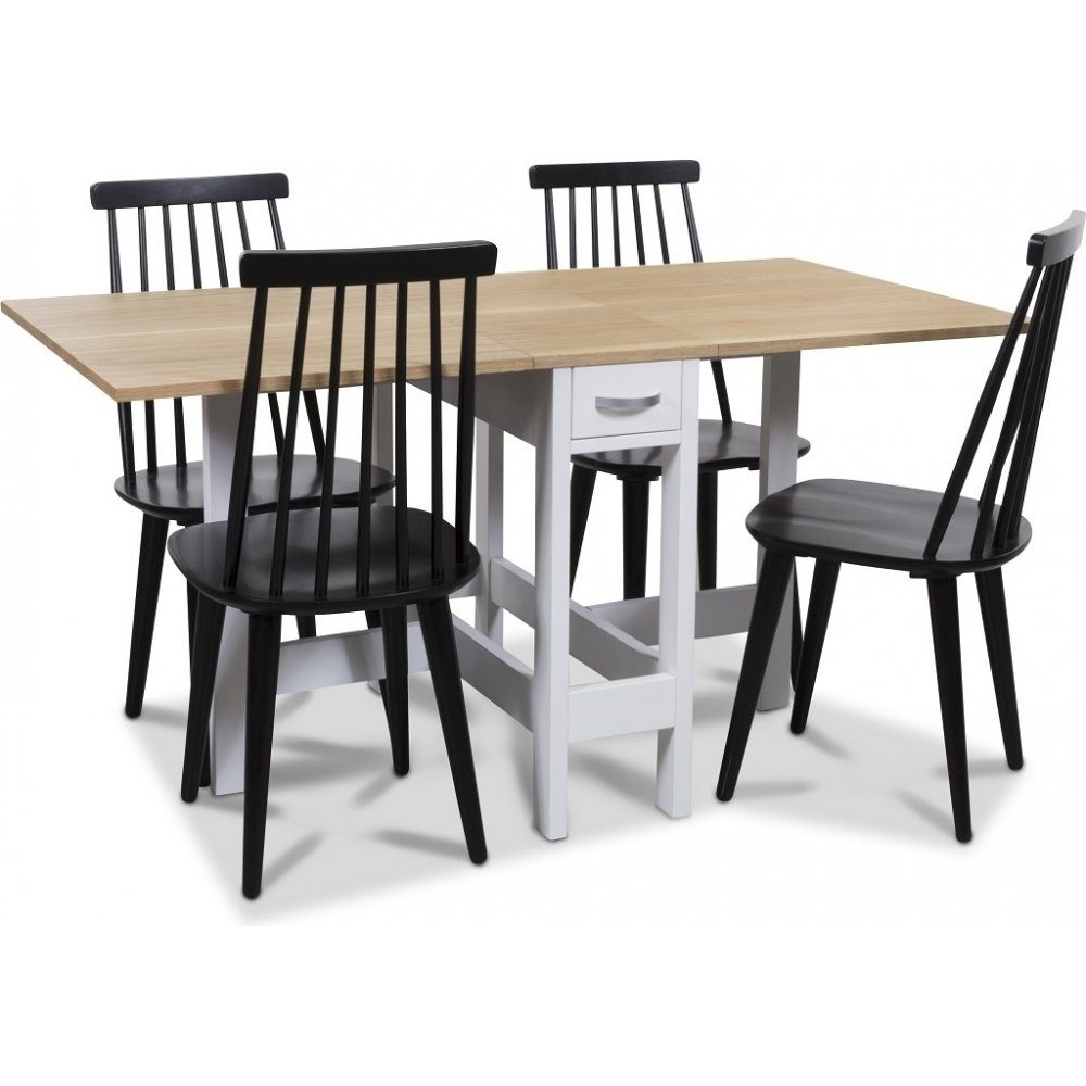 Signum matgrupp Slagbord vit/ek med 4 st svarta Dalsland pinnstolar: