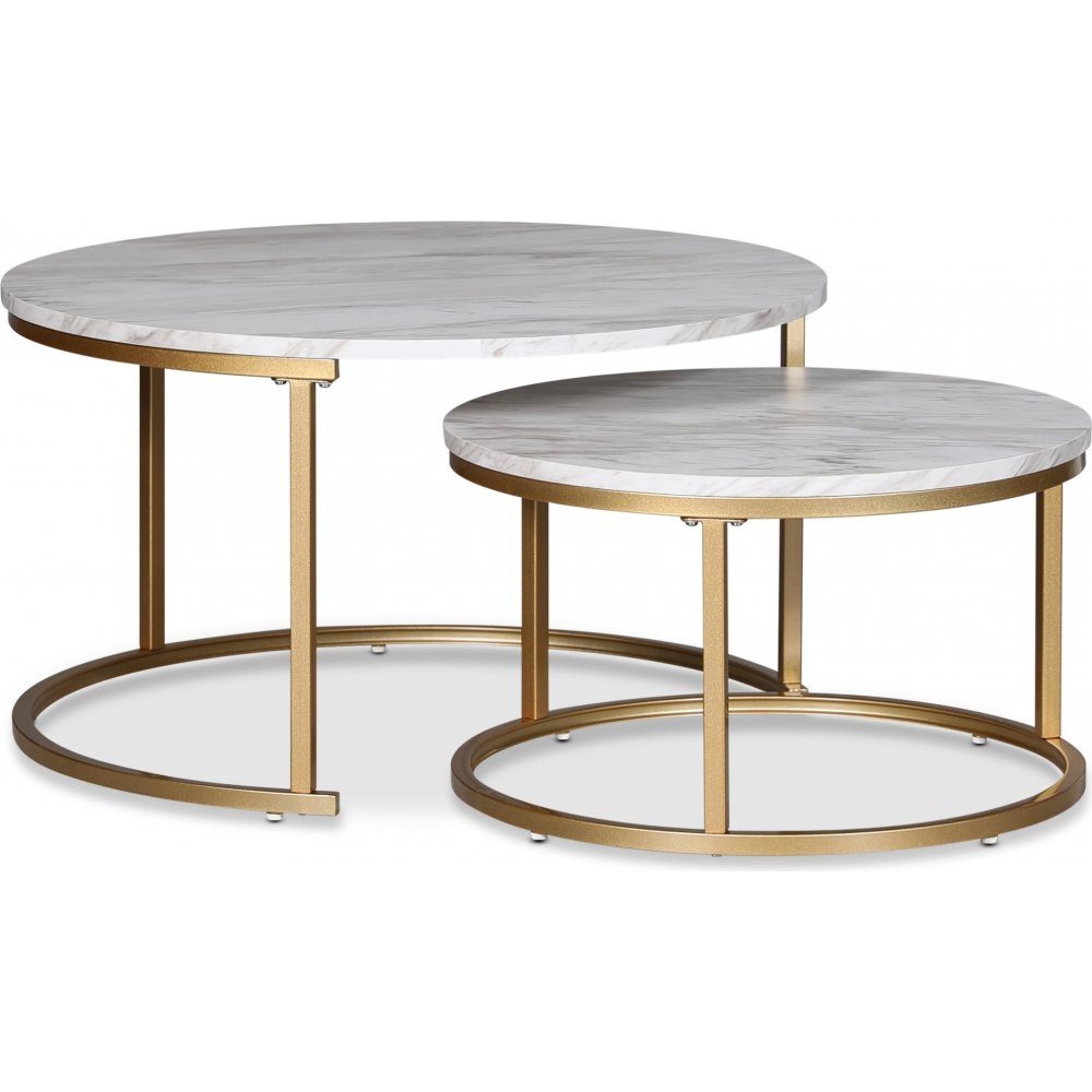 Solano satsbord Ø80/60 cm - Vit marmorimitation / Mässing