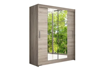 Leila Garderob 150 cm Skjutdörrar Delad Spegel, Ek/Tryffel/Spegel