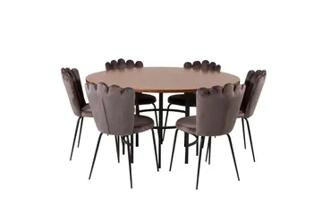 Copenhagen Matgrupp 140 cm Rund med 6 Limhamn stolar, Svart