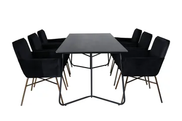 Jimmy Matgrupp 195 cm Rektangulär med 6 Petra stolar, Svart