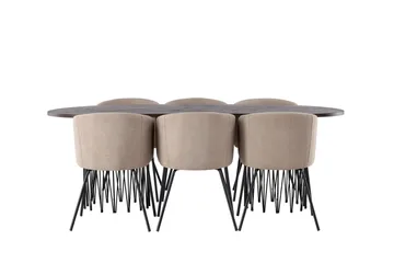 Jimmy Matgrupp 195 cm Rektangulär med 6 Berit stolar, Svart
