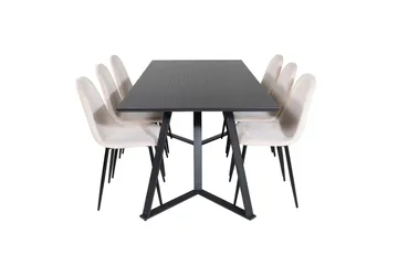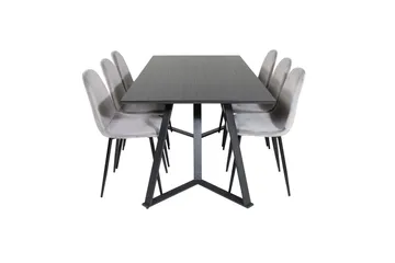 Petra Matgrupp 190 cm Rektangulär med 6 Velvet stolar, Svart