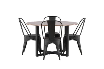 Stone Matgrupp 120 cm Rund med 4 Chico Stolar, Svart