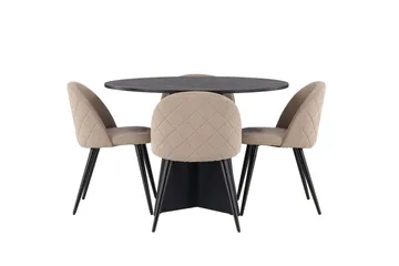 Bianca Matgrupp 110 cm Rund med 4 Velvet stolar, Beige