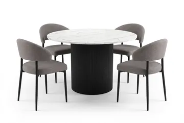 Kronblom Matbord 120 cm + 4 st Nibe stol grå med svarta ben, Vit/Grå