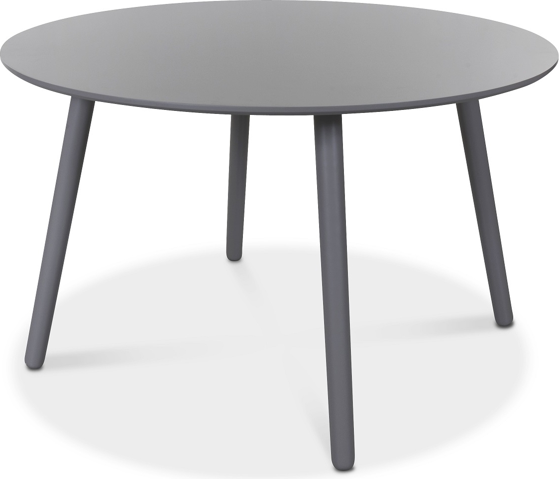Rosvik matgrupp grått runt bord med 4 st vita Dalsland Pinnstolar