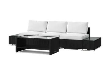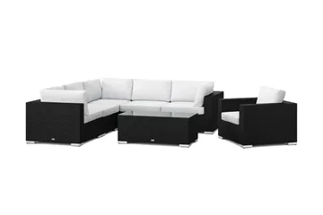 Bahamas utesoffa 6-sits vändbar schäslong med avslut och bord, Svart