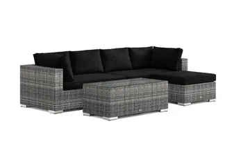 Bahamas utesoffa 5-sits vändbar schäslong med avslut och bord, Grå