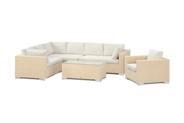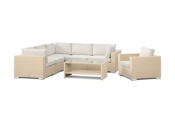 Bahamas utomhus hörnsoffa 7-sits vändbar och bord med hylla, Beige