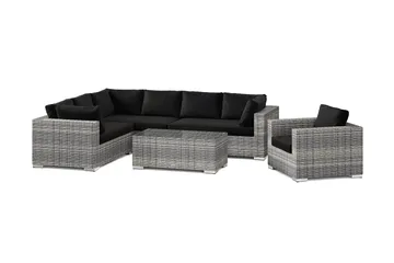 Bahamas utomhus hörnsoffa 6-sits vändbar med fåtölj och bord, Svart