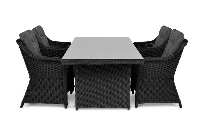 Marcus Matgrupp Utomhus 200 + 4 Fåtöljer m Dyna, Svart