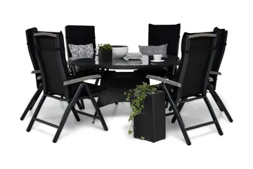 Monaco Matgrupp Utomhus 152-210 + 6 Jenny Ställbar Fåtölj m Dyna, Svart/Svart/Svart