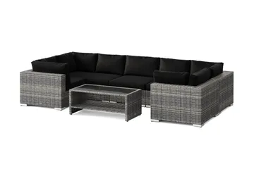 Bahamas L-formad utesoffa vänster, 7-sits med bord och hylla, Svart